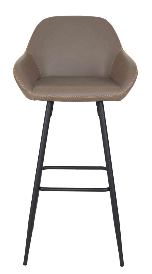 Our Bucket Bar Stools have a stylish, contemporary design. This bar stool has a metal pressed backrest and plywood molded seat, lightly padded and extremely comfortable. Upholstered in high quality vintage synthetic leather with an exposed zigzag stitching, on a MP-05 tapered sandy black steel frame. The slightly slanted armrests create a very sophisticated look in a relaxed setting.