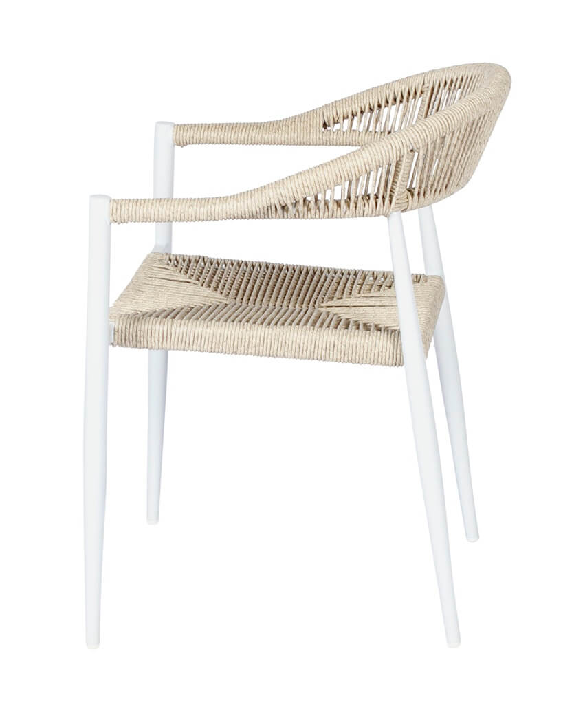 Our affordable, stylish and contemporary Matrix Rope Chairs are fabricated with high frequency welded Dia32x1,2mm & Dia19x1,2mm & Dia25mmx1,0mm aluminium reducing tube frames with intricately hand woven durable, high strength 6mm Polyethylene (PE) cord. The Matrix Rope Chairs can be used both indoors or outdoors due to the UV resistant woven cord, and durable powder coated aluminium frames. They are stackable when not in use and are available in four different colours.