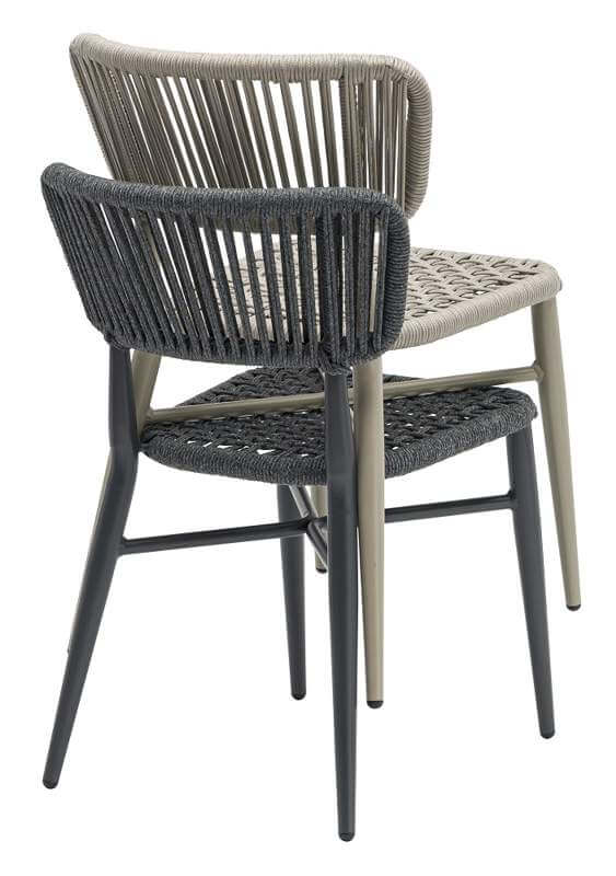 Our stylish and contemporary Nordic Rope Side Chairs are fabricated with high frequency welded Dia 35mm aluminium reducing tube frames and intricately hand woven durable, high strength 6mm Polyester UV resistant cord. The Nordic Rope Side Chairs are perfect for seating indoors or outdoors at your stylish restaurant or cafe. They can be used both indoors or outdoors due to the UV resistant woven cord, and durable powder coated aluminium frames. They are stackable when not in use and are available in either Side Chairs or Arm Chairs options in Taupe or Grey colours.