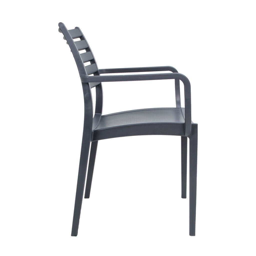 The Sienna Arm Chairs are manufactured locally using high quality virgin UV stabilized polypropylene glass fibre reinforced gas injection process resulting in an extremely durable product. They can be used indoors or outdoors. These chairs are stackable and washable with soapy water. The clean lines lean towards a contemporary fresh look for any restaurant, cafe, hotel or home. They come with a 5 year warranty against manufacturing defects and a 2 year warranty against colour fading for absolute peace of mind.